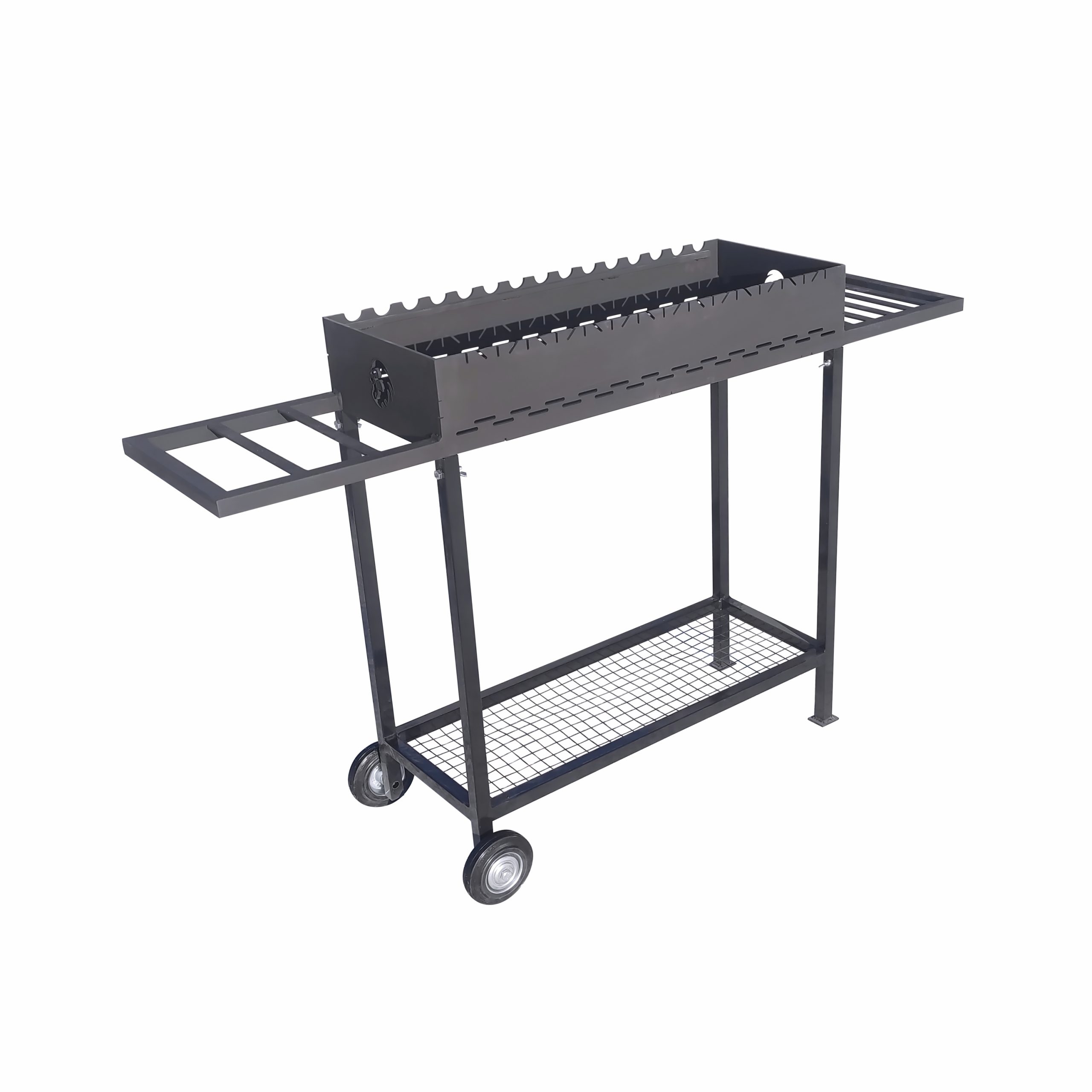 Толщина стали-5мм,  высота-980 мм,  ширина-320мм,  длина-1450мм,  глубина-145мм. 2 столешницы по краям, специальная полка для дров или посуды,пара колесиков.